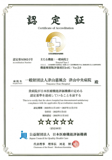 当院は、公益財団法人日本医療機能評価機構が定める認定基準を達成している事が認められ、2023年1月4日付けで、5回目の病院機能評価認定病院の認定証を受領致しました。