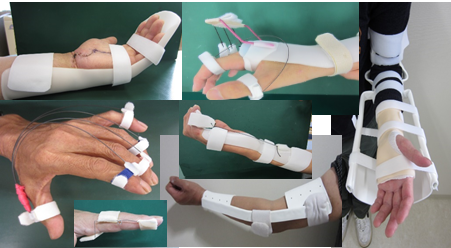 また、ハンドセラピィにおいては、手外科医と連携しながら、術前評価やSplint(手の装具)作成を含め、入院時に限らず、外来でも作業療法を実施しています。