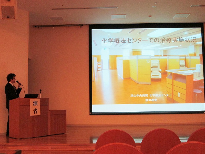 化学療法センターは平成25年4月1日に開設致しました。来月(平成27年4月)で3年目を迎えます。 当センタースタッフを代表しまして、野中化学療法センター長、大谷がん化学療法看護認定看護師、水田薬剤師より、2年間の実績や取り組み、患者さん・ご家族の声、今後の展望について講演させて頂きました。 |