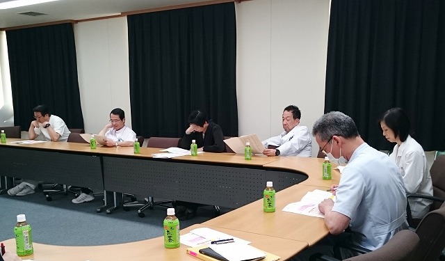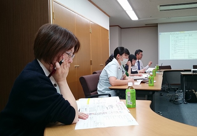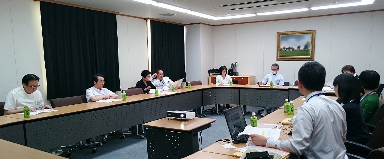 左から>形成外科 奥本先生、外科 林先生、入退院支援センター 松永センター長、外科 宮島先生、放射線科 河原先生 右から>企画管理部 井野さん・和田さん、医療情報プラザ 小林司書、N1病棟 遠藤がん化学療法看護認定看護師、 化学療法センター 大谷がん化学療法看護認定看護師、放射線技術部 松田診療放射線技師 |