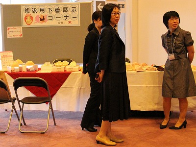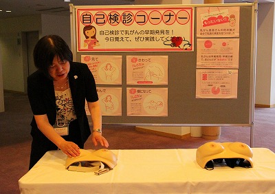 ※自己検診方法の動画を観ていただきながら、 こちらの検診モデルを実際に触っていただき、 感覚を確かめていただきました ※画像は化学療法センター 池上栄子師長です |