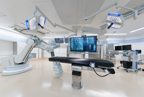 TAVIは、ハイブリッド手術室(hybrid operation room; HOR)と呼ばれる、高機能の手術室において治療を行います。
