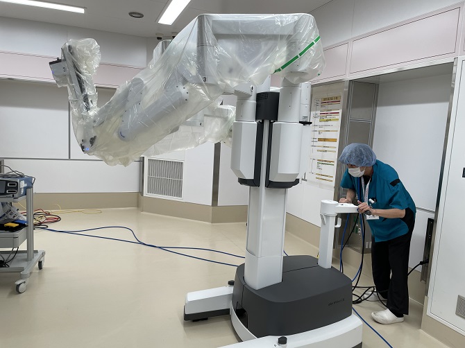 内視鏡、顕微鏡、レーザー手術装置、眼科(白内障治療)、超音波外科吸引装置などの手術に立会い、各種装置のセッティング、術中のトラブルなどに対応しています。ダヴィンチ手術では、泌尿器科・外科の手術に立会い、各種装置・映像システムのセッティング、ペイシェントカートのロールイン・ロールアウト、術中のトラブルなどに対応しています。ステントグラフト手術では、各種機器のセッティング・操作をおこない、手術の流れに応じて滅菌物を清潔野に受け渡し、状況に応じて看護師と協力し、清潔野での物品準備・治療介助をおこなっています。